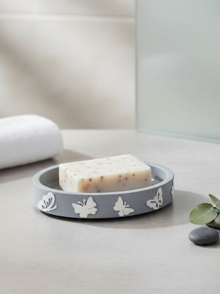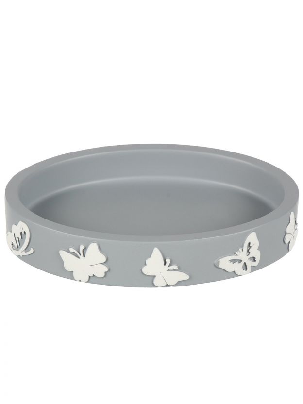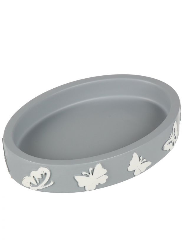 Мыльница настольная, Бабочки на сером, полистоун, 12.7х9.2х2.2 см, BRE0878AA-SD