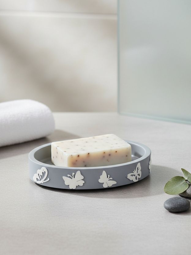 Мыльница настольная «Бабочки на сером» из полистоуна — это не просто аксессуар, а функциональное решение для хранения мыла в ванной. Благодаря прочному материалу и продуманной форме изделие не скользит, не оставляет разводов, а серый цвет с декоративными элементами делает его универсальным для любого стиля. Если вы ищете, какую мыльницу выбрать для небольшой ванной или гостевого санузла, обратите внимание на компактные размеры — 12.7x9.2x2.2 см легко размещаются даже на узкой полке.
