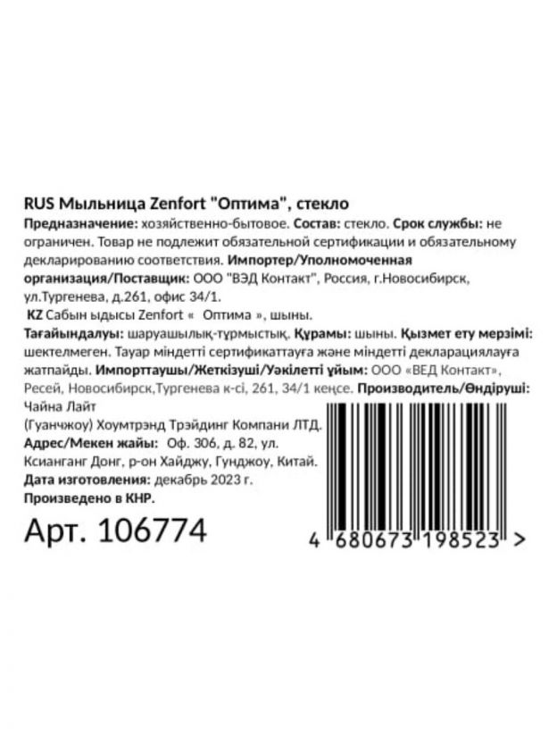 Покупка мыльницы Zenfort Оптима обеспечит чистоту и порядок в ванной, добавит элегантности и упростит уход за мылом.
