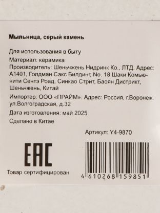 Мыльница настольная Y4-9870: стильный акцент для ванной из серого керамического камня. Удобно, долговечно, гармонично впишется в интерьер любого пространства.