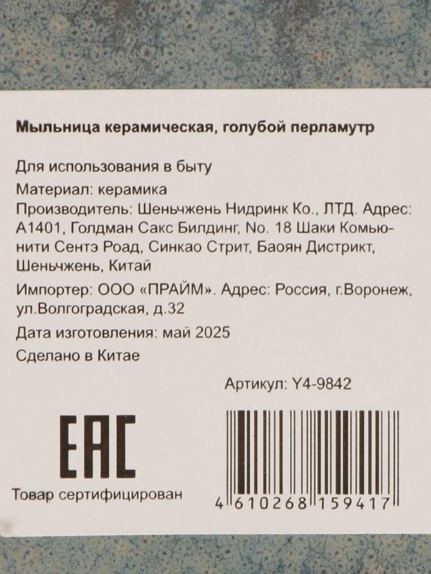 Ориентируйтесь на материал (керамика устойчива к влаге), размер (12.5х8.5х2.8 см подходит для большинства раковин), и дизайн — голубой перламутр универсален.