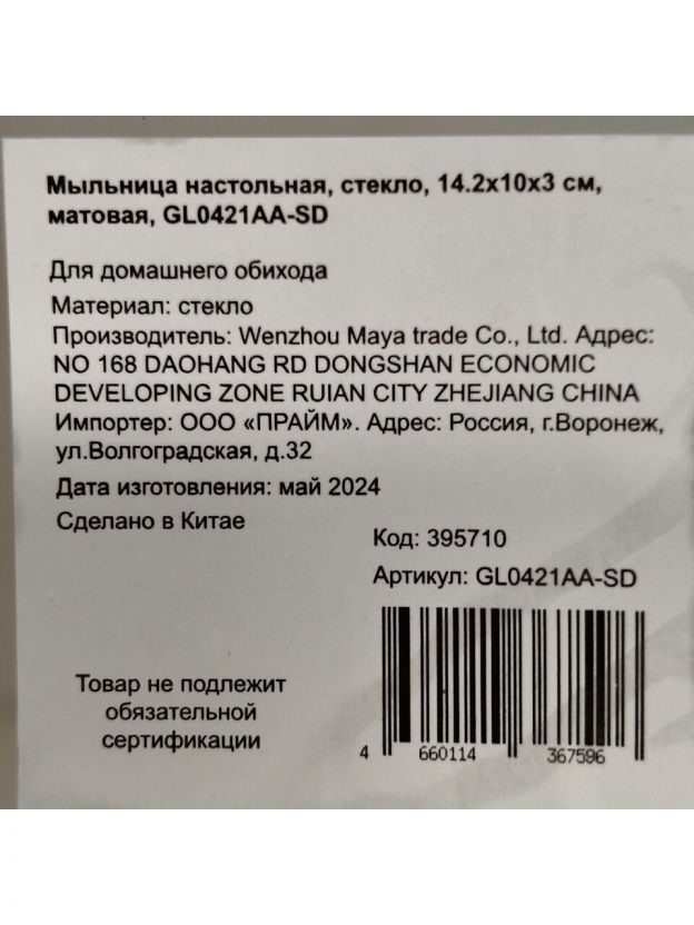 Мыльница настольная, стекло, 14.2x10x3 см, матовая, GL0421AA-SD