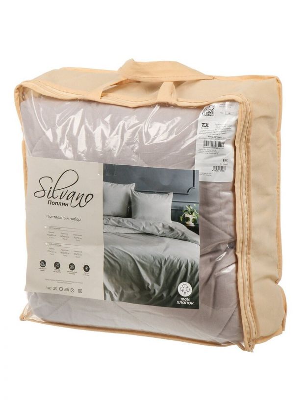 Набор 1.5-спальный Silvano: поплиновое бельё с одеялом 145x215 см, 100% хлопок, стильный серый — идеальный подарок и уют для дома.