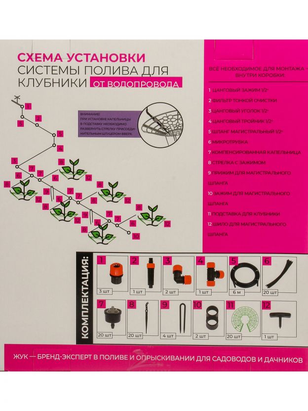 Набор 95 шт, для капельного полива клубники, от водопровода, на 20 растений, Жук, №30, 9064-00