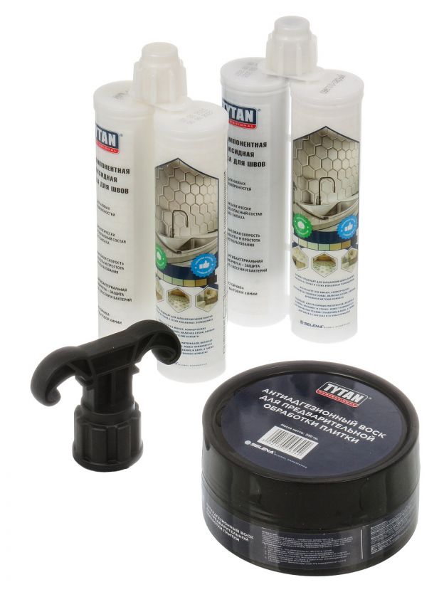 Стартовый набор для затирки швов: эпоксидная двухкомпонентная смесь и инструменты Tytan 11051 — идеальное решение для долговечных и водостойких швов на полу и стенах.