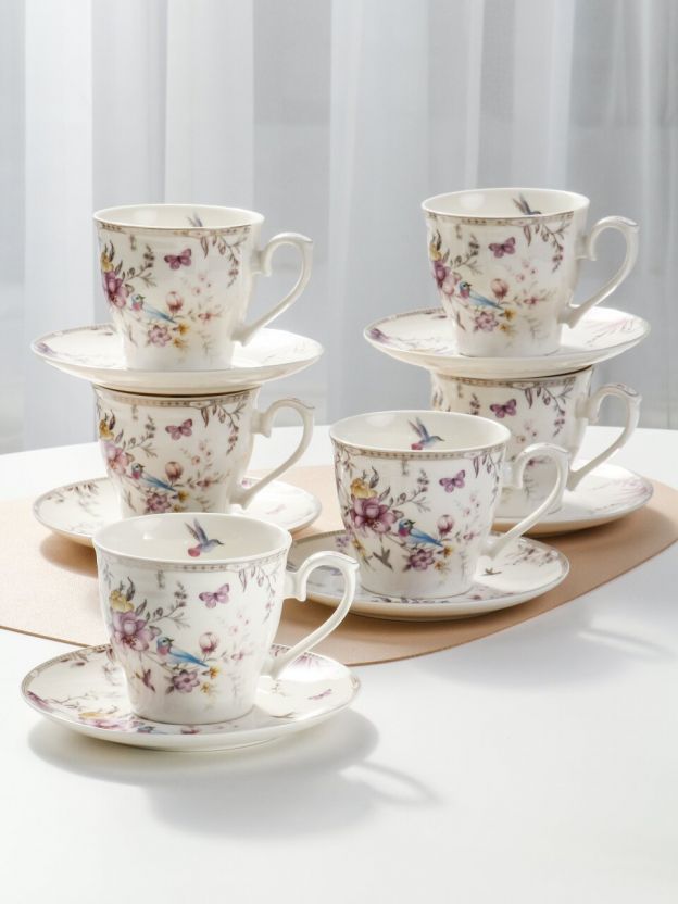В комплекте 12 предметов: 6 чашек объёмом 260 мл и 6 блюдец. Этого достаточно для полноценной сервировки на 6 персон.