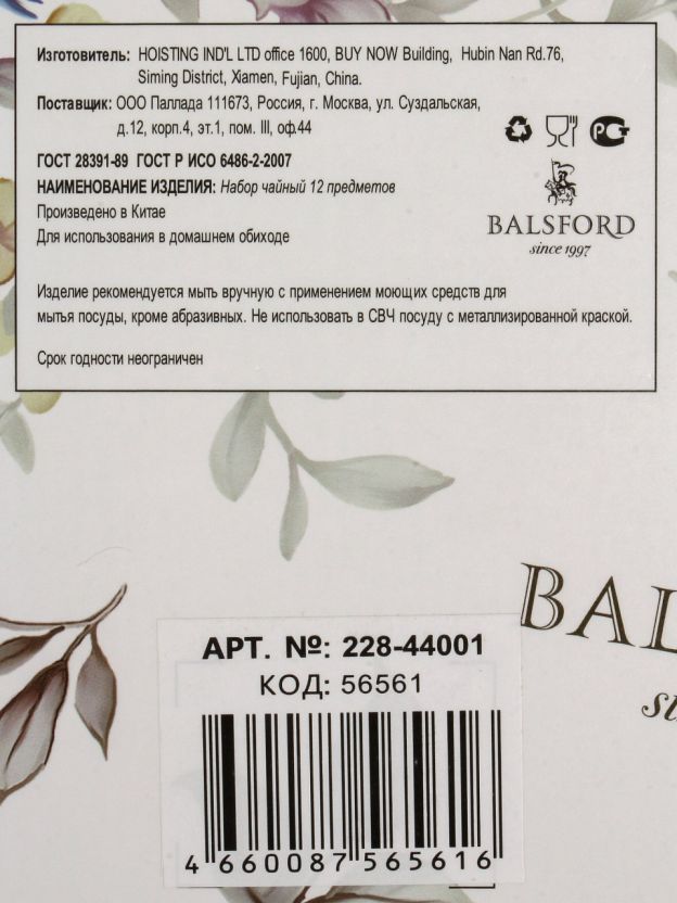 В отличие от аналогов из стекла или керамики, фарфор Balsford не требует сложного ухода, однако не предназначен для посудомоечных машин и микроволновых печей. Как использовать такой набор? Просто сервируйте стол, наслаждайтесь вкусом чая и радуйте гостей. Подходит ли для подарка? Да, благодаря стильной подарочной упаковке и универсальному дизайну. Если вы сравниваете, что лучше для дома — классический или современный набор, обратите внимание на долговечность и эстетику фарфора.