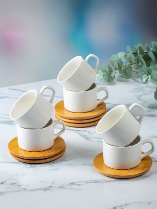 В наборе 12 предметов на 6 персон, объём каждой чашки — 170 мл, материал — керамика, стиль — современный, цвет — белый.