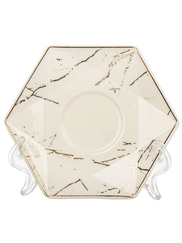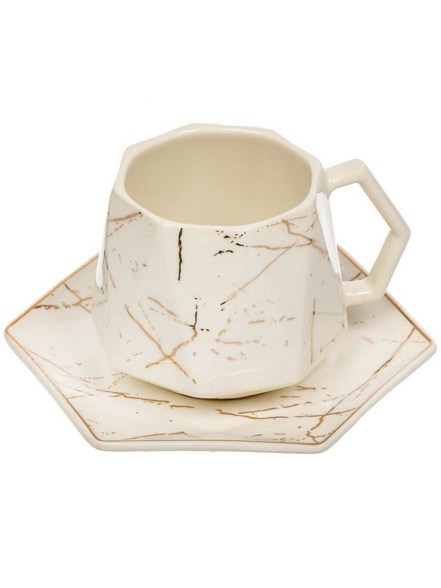 Набор чайный керамика, 12 предметов, на 6 персон, 180 мл, Белый мрамор, Y4-6605, подарочная упаковка