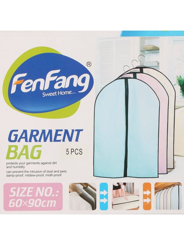 Набор чехлов для одежды 5 шт 60x90 см: компактное хранение вещей без пыли и запаха, идеальное решение для гардероба, дачи и путешествий.