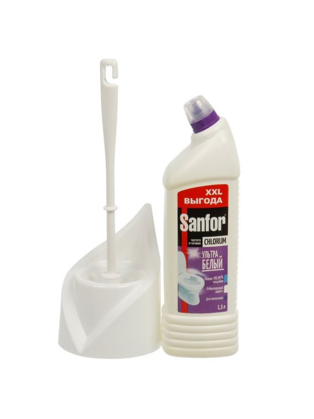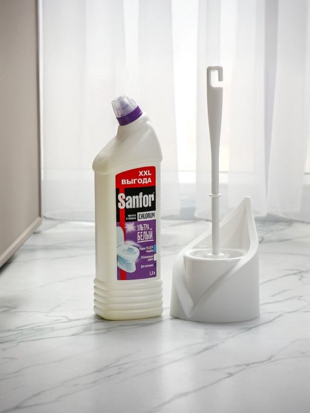Комплект для чистоты и гигиены сантехники: чистящее средство Sanfor 1.5 л и ерш для туалета. Эффективное удаление загрязнений и антибактериальная обработка благодаря щелочной формуле с хлором. Без отдушки, подходит для регулярного использования в доме и на даче. Отличный выбор для поддержания безупречной чистоты санузла. Преимущества: антибактериальный эффект; удаление сложных загрязнений; эргономичный ерш в комплекте; без лишних ароматизаторов; идеально подходит для унитаза. Покупка набора позволяет быстро и безопасно поддерживать свежесть и гигиену в доме.
