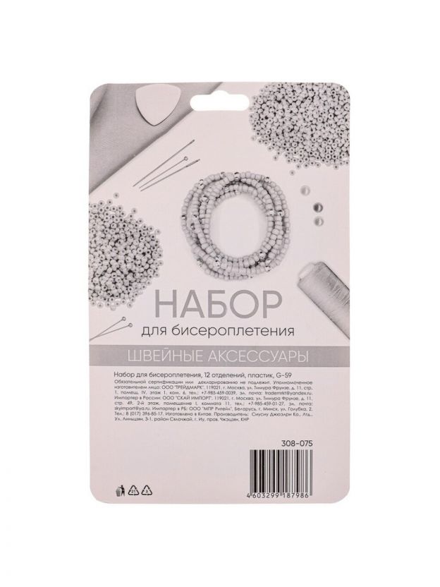Набор для бисероплетения 12 отделений, G-59, в ассортименте, пластик, 308-075