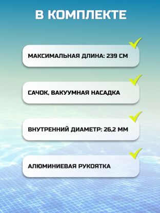- алюминиевая телескопическая ручка длиной 239 см(для бассейна диаметром до 457 см).