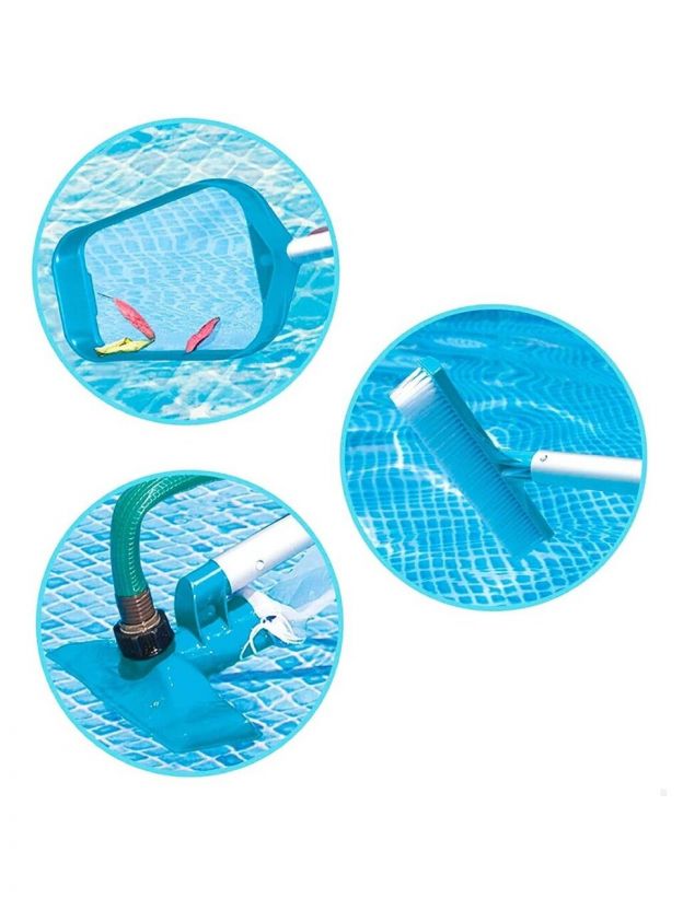 Покупка этого набора обеспечит чистоту и гигиену бассейна, что особенно важно для здоровья и комфорта. Экономьте время и силы, доверяя профессиональному уходу от Intex. Наслаждайтесь беззаботным отдыхом в чистом бассейне, не беспокоясь о трудоемкой уборке. Этот набор станет вашим надежным партнером в поддержании идеальной чистоты и порядка.