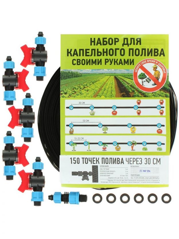 Набор для капельного полива 150 точек полива через 30 см, с краном