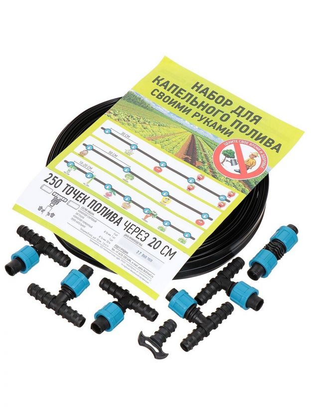 Набор для капельного полива 250 точек полива через 20 см, 50 м, Т-образный