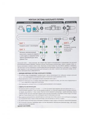Благодаря Т-образному старт-коннектору подключение к источнику воды становится максимально простым и быстрым. Система работает как от водопровода, так и от емкости, что делает ее универсальным выбором для дачи или приусадебного участка. Диаметр подключения 1/2 дюйма обеспечивает совместимость с большинством стандартных шлангов и систем водоснабжения. Регулятор давления воды позволяет точно настраивать интенсивность полива, обеспечивая оптимальные условия для каждого растения.