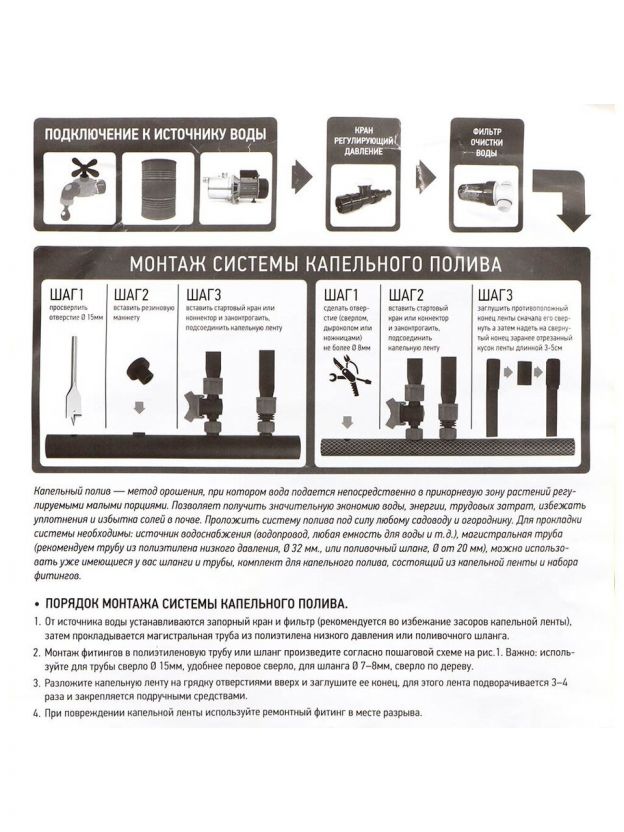 Капельный полив — ключ к здоровому росту растений и высокому урожаю. Система легко подключается как к водопроводу, так и к емкости, что делает ее универсальным выбором для любого участка. Прямой старт-коннектор упрощает монтаж, а наличие регулятора давления воды позволяет оптимизировать расход в зависимости от потребностей растений. Прочный пластик гарантирует надежность и долговечность использования в условиях российского климата.