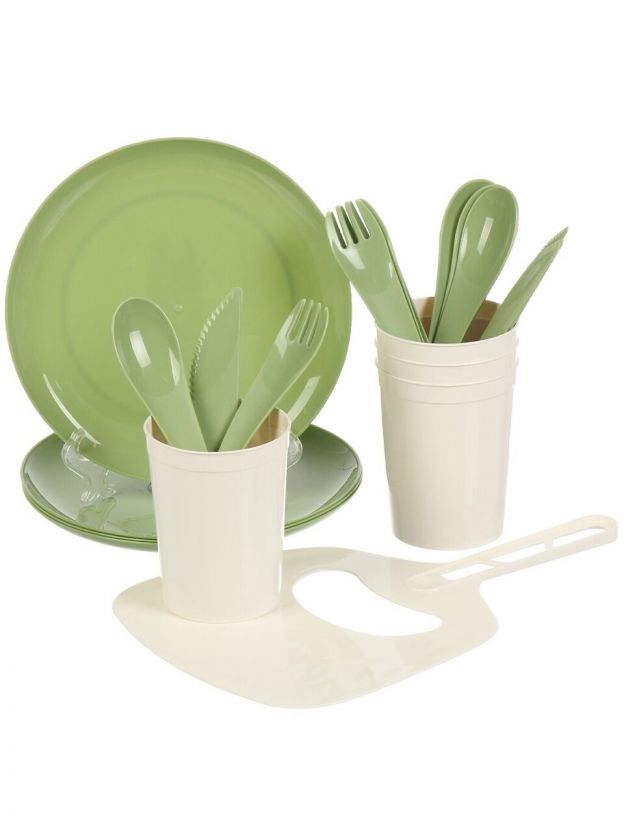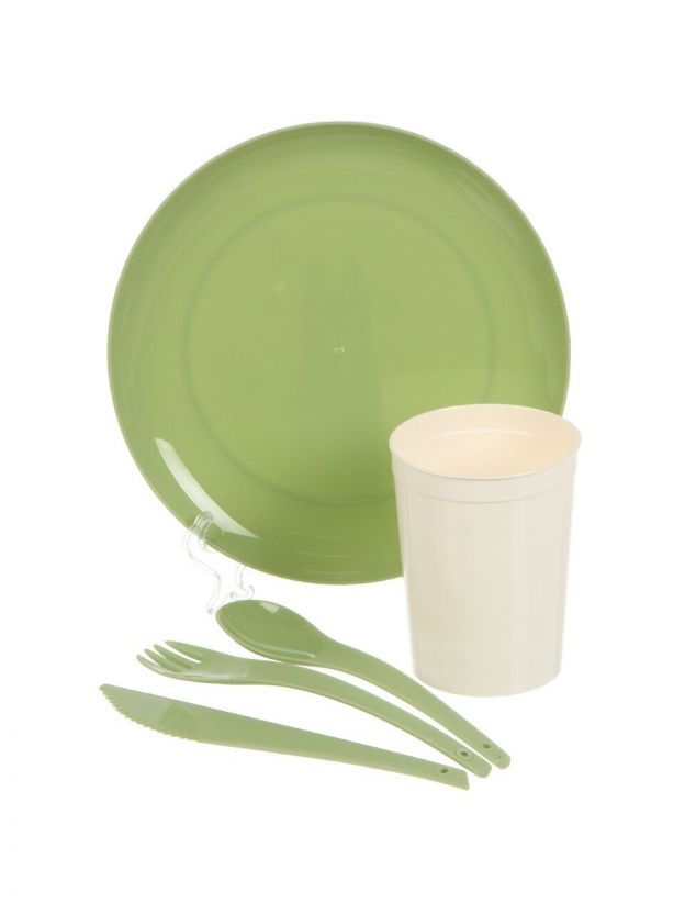 Набор для пикника на 4 персоны, 21 предмет, полипропилен, зеленый, Plast team, PT405212000