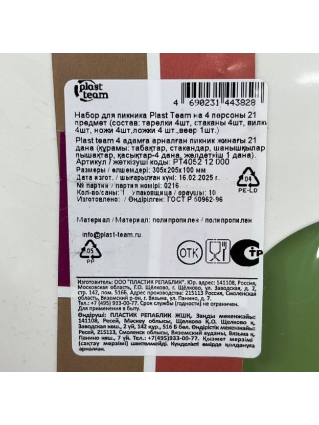 Планируете провести незабываемый пикник на свежем воздухе? Набор для пикника на 4 персоны, состоящий из 21 предмета от бренда Plast Team, станет вашим идеальным спутником для любого выезда на природу. Удобный и практичный набор позволит насладиться трапезой на свежем воздухе в компании друзей или семьи, не заботясь о мелочах.