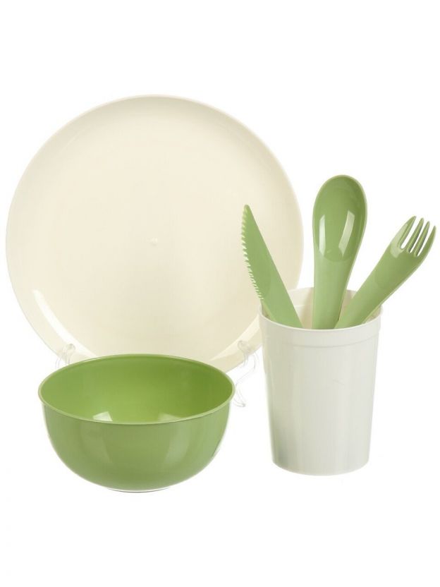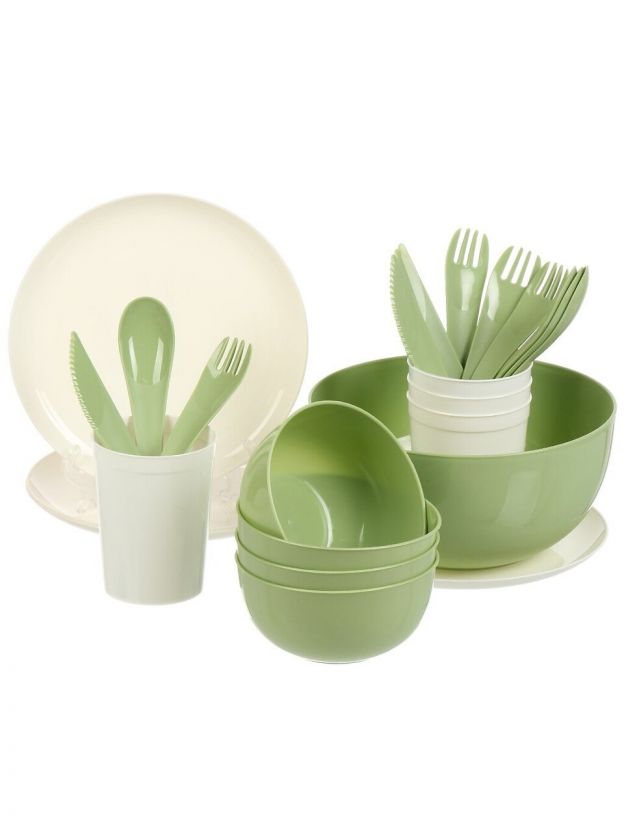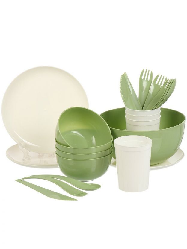 Набор для пикника на 4 персоны, 25 предметов, полипропилен, зеленый, Plast team, PT184312000