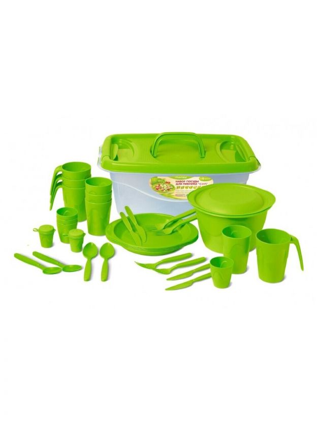 - Компактность: набор помещается в пластиковый контейнер. Это делает его удобным для транспортировки и хранения, а также позволяет сэкономить место в вашем багаже во время отдыха на природе.