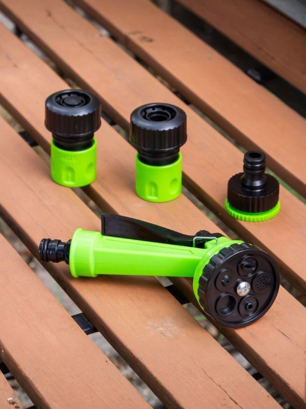Комплект для полива Grandy JS-930534 — идеальное решение для ухода за растениями, деревьями и садом. Пять предметов обеспечивают удобство и эффективность полива. Пистолет с пятью режимами, прочные фитинги и универсальный штуцер подходят для шлангов 3/4" и кранов 1/2"-3/4". Пластиковый материал гарантирует легкость и долговечность. Подходит для дома, дачи, сада.