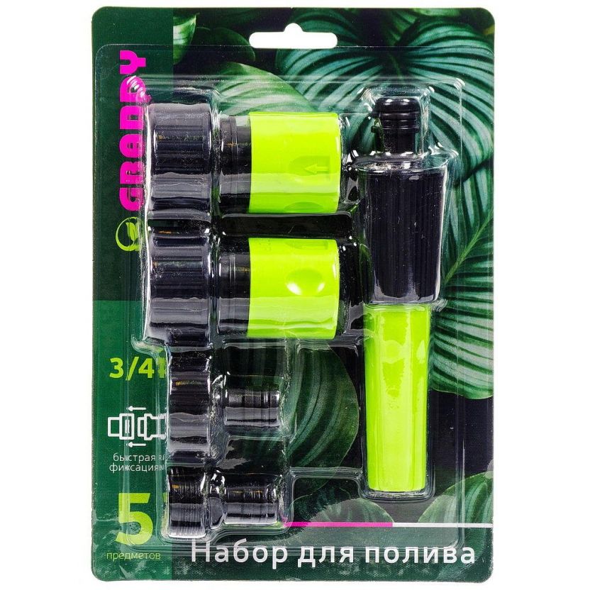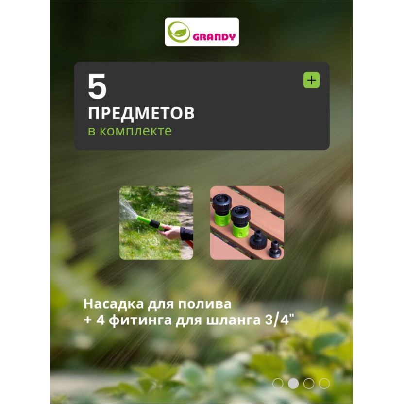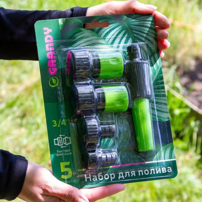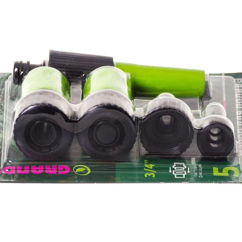 Набор для полива насадка поливочная, фитинги для шланга 3/4", штуцеры на кран 3/4", с внутренней и наружней резьбой, Grandy, JS-9301