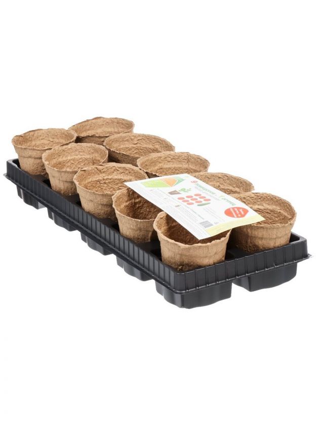 Набор для рассады 100 мм, 10 торфяных горшочков, с поддоном, ГазонCity