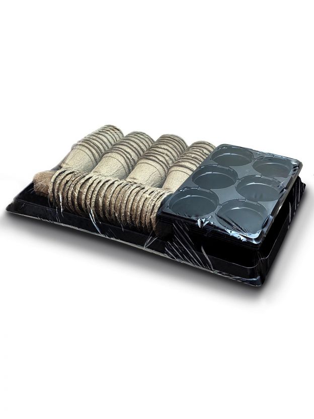 - Универсальный набор: 60 торфяных горшков, 3 поддона и 5 кассет — всё для полноценного выращивания рассады.