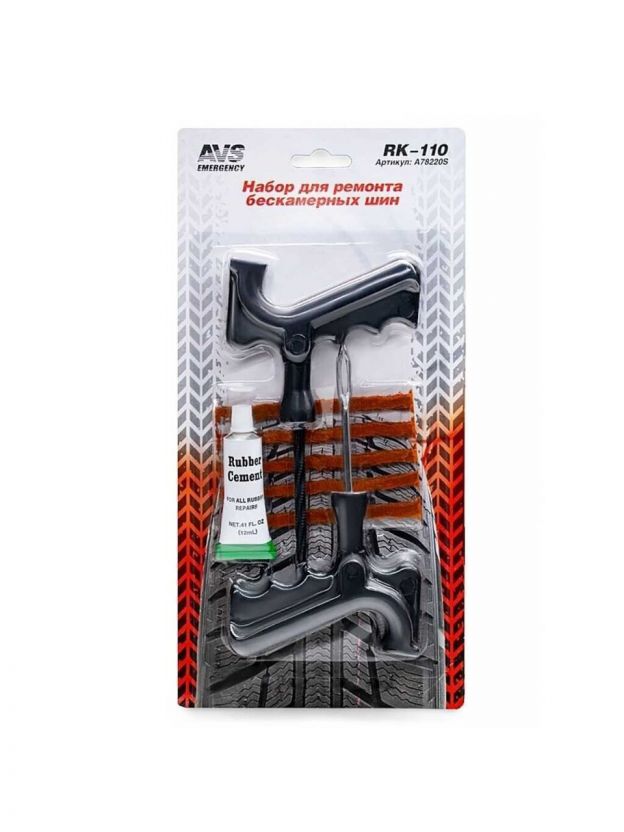 Набор для ремонта бескамерных шин AVS, RK-110, A78220S, 8 предметов