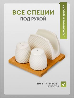 Секрет идеальной кухни и столовой - внимание к деталям, порой незначительные, на первый взгляд, мелочи могут многое рассказать о владельце дома. Наличие на столе салфетницы и набора для специй - проявление заботы к гостям и домочадцам, а благодаря использованию натуральных материалов и эстетичному оформлению такой набор послужит не только своей функциональностью, но и станет самостоятельным элементом декора.