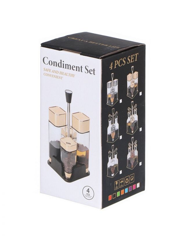 Набор для специй пластик, стекло, металл, 4 шт, на подставке, Y4-3190