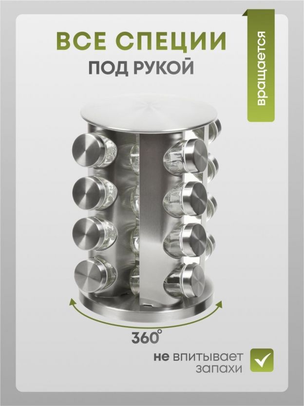 Набор для специй на вращающейся подставке станет отличным подарком для любой хозяйки!