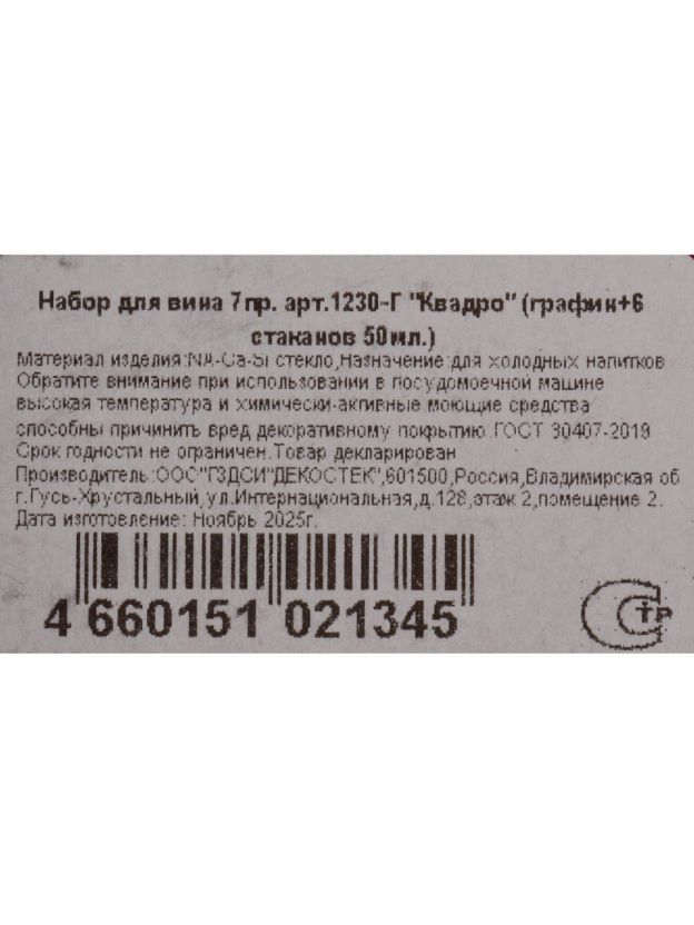 - Прочное прозрачное стекло, 7 предметов: графин + 6 стопок по 50 мл (легко мыть, устойчиво к царапинам)
