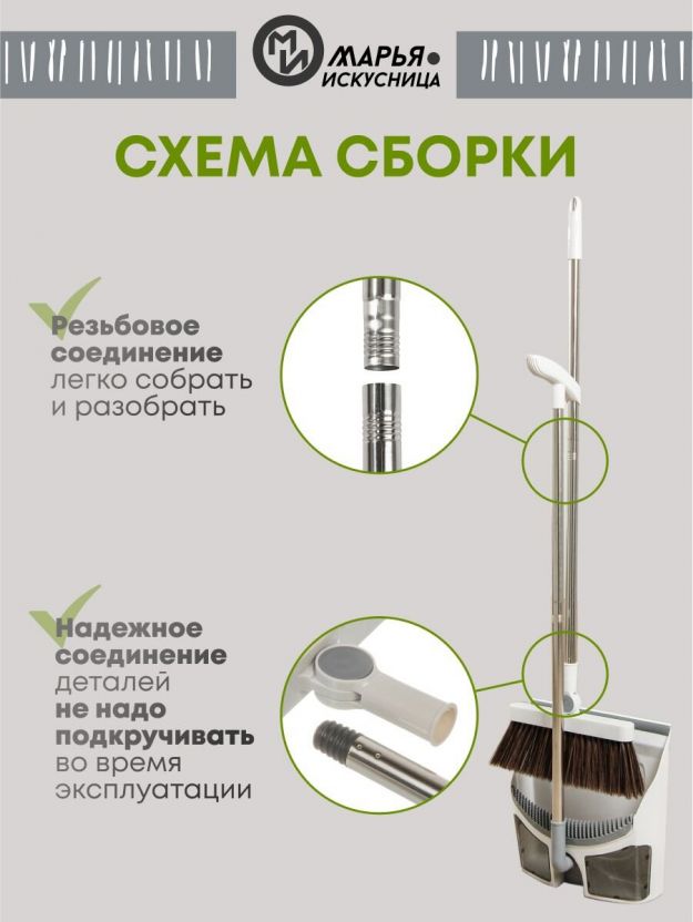 Покупая этот набор, вы получаете не только качественный инструмент для уборки, но и экономите время и силы, которые можно потратить на более приятные дела. Набор от "Марья Искусница" – это сочетание функциональности и эстетики, которое оценит каждый.