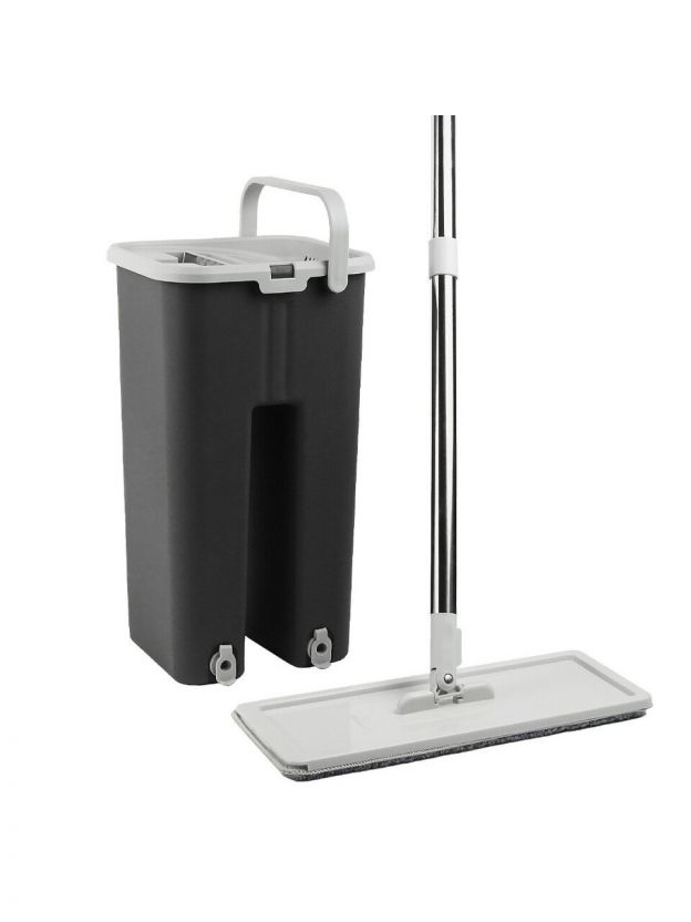 Набор для уборки выполнен в элегантном графитовом цвете, который гармонично впишется в любой интерьер. Благодаря использованию качественного полипропилена и прочных материалов, таких как пластик и металл для рукоятки, обеспечивается долговечность и надежность в использовании. Телескопическая ручка позволяет регулировать длину, что делает уборку более комфортной и эффективной.