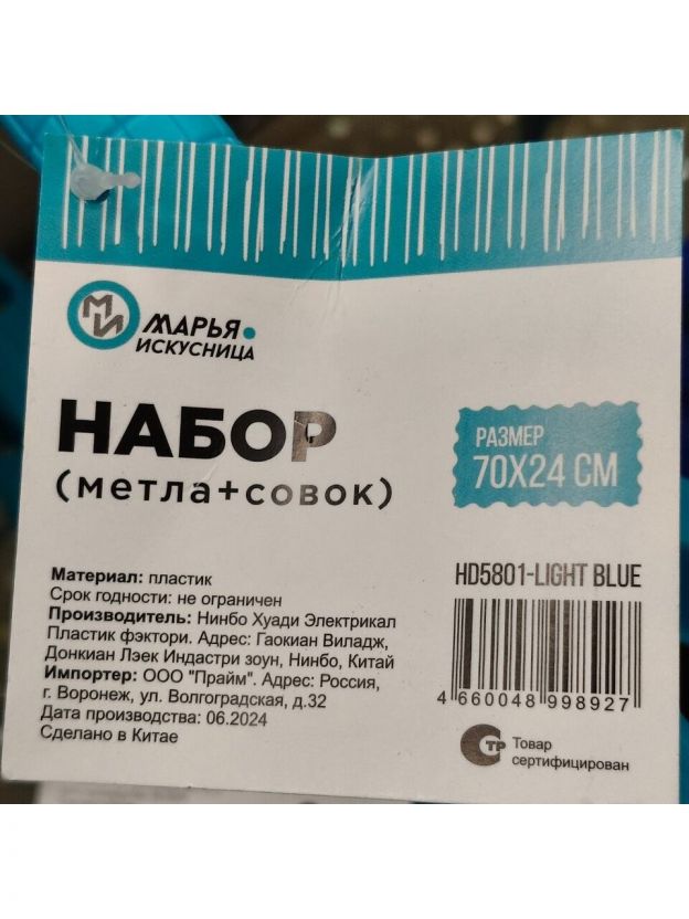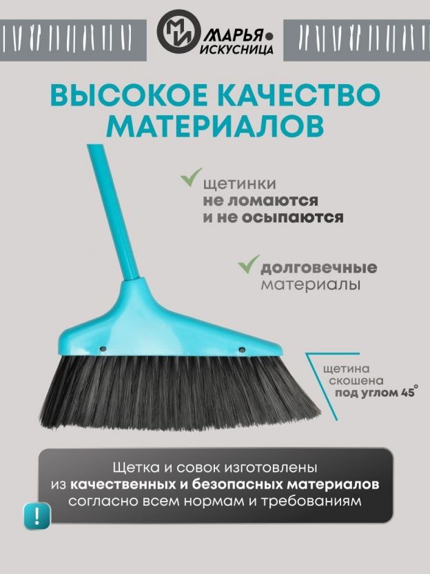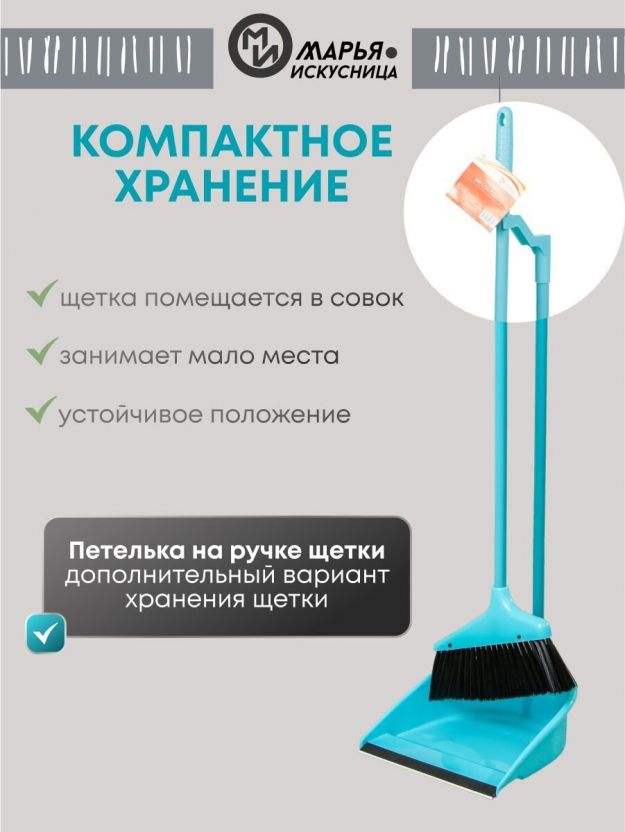 Набор для уборки пола совок, щетка с ручкой, голубой, Марья Искусница, Ленивка, HD5801