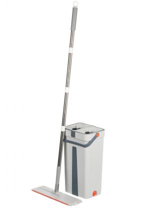 Ведро выполнено из прочного пластика, рукоятка швабры — из металла. В комплекте: ведро с отжимом и швабра с насадками.
