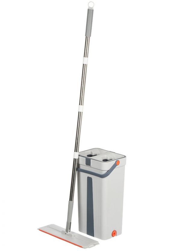 Ведро с отжимом и швабра с длинной ручкой позволяют легко проводить влажную уборку: окуните насадку, отожмите лишнюю воду с помощью механизма и приступайте к уборке. Все детали износостойкие, просты в уходе.