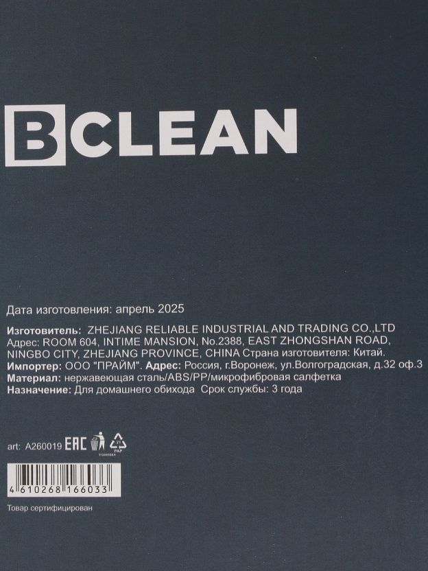 Закажите набор для уборки BCLEAN прямо сейчас — получите отличное качество по выгодной цене. Доставка по России, гарантия на материалы и быстрая поддержка покупателей.