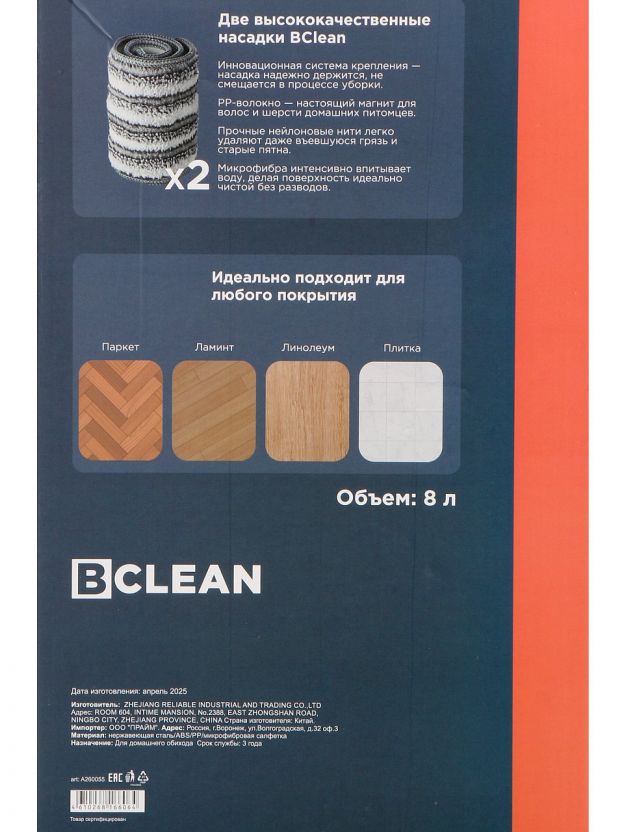 Набор для уборки Bclean A260055: ведро и швабра с отжимом — быстрое решение для чистоты, экономия времени и сил при уборке квартиры или дачи. Почему выбирают: Удобный отжим — система «2-в-1» облегчает влажную уборку без контакта с грязной водой. Прочный пластик и металлическая рукоятка — долговечность, лёгкость и устойчивость к износу. Идеален для квартиры, дачи и даже в подарок — компактный, стильный, серый дизайн впишется в любой интерьер. Набор для уборки Bclean A260055 — это оптимальный выбор для тех, кто ищет, какую швабру выбрать для быстрой и эффективной уборки. Комплектация включает ведро с функцией отжима и швабру с длинной металлической ручкой, что позволяет легко очищать полы без лишних усилий. Благодаря продуманной конструкции, вы сможете быстро промыть и отжать насадку, не пачкая рук — это особенно важно для аллергиков и семей с детьми. В отличие от стандартных наборов, этот комплект изготовлен из прочного пластика и металла, что гарантирует долгий срок службы даже при частом использовании. Часто спрашивают, подходит ли такой набор для влажной уборки в доме или на даче — ответ: да, благодаря универсальной конструкции и эргономичной ручке, уборка становится максимально комфортной и быстрой. Если сравнить с аналогами, здесь вы получаете улучшенный механизм отжима и современный дизайн без переплаты за бренд. Как использовать набор для уборки Bclean? Просто наполните ведро водой, окуните швабру и воспользуйтесь встроенной системой отжима — всё готово для чистоты без разводов и лишних хлопот. Закажите набор для уборки Bclean A260055 прямо сейчас — получите надёжный инструмент для идеальной чистоты по выгодной цене. Гарантия качества и быстрая доставка! Частые вопросы: Какой материал используется в наборе для уборки Bclean A260055? Ведро выполнено из прочного пластика, а рукоятка швабры — из металла. Это обеспечивает лёгкость и устойчивость к повреждениям. Что лучше для уборки квартиры: обычная швабра или набор с отжимом? Набор с отжимом позволяет быстро и гигиенично промывать полы, не контактируя с грязной водой. Это экономит время и делает уборку безопасной для рук. Подходит ли набор для влажной уборки на даче? Да, комплект универсален и подходит для любых помещений — квартиры, дачи, офиса. Длинная ручка и удобный отжим обеспечивают комфорт даже при больших площадях.