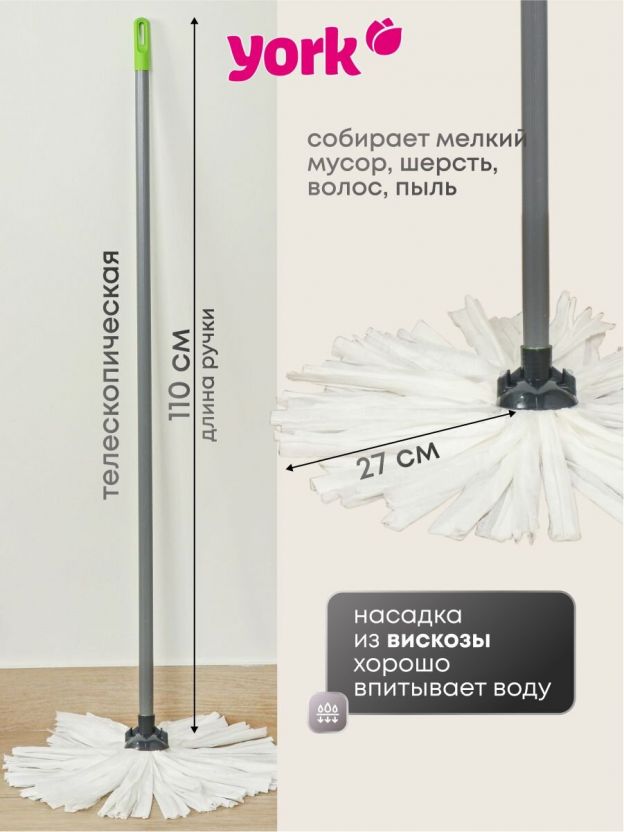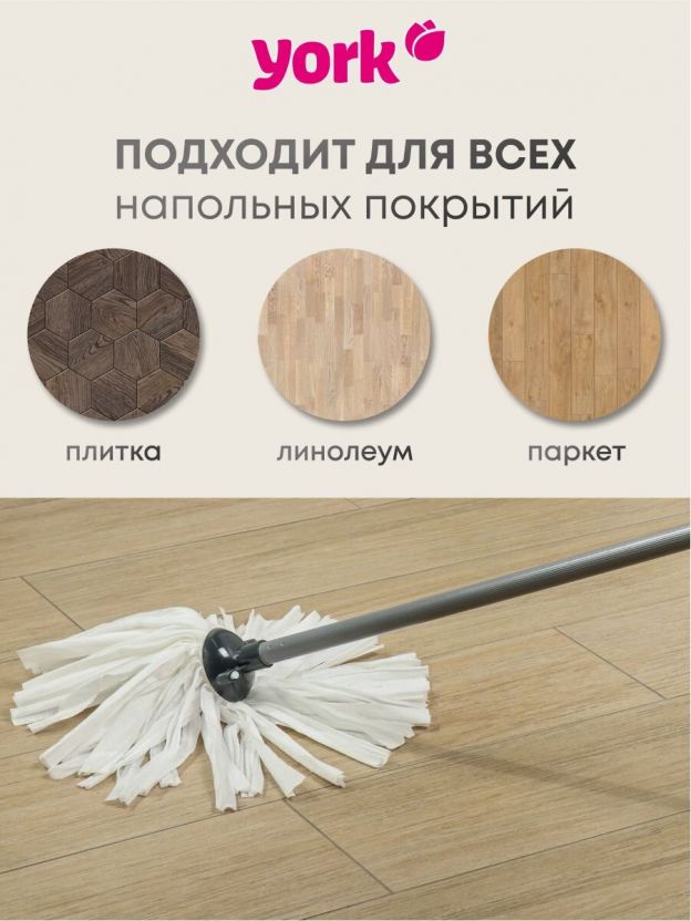Набор для уборки ведро круглое 10 л + швабра, в ассортименте, York, 072030