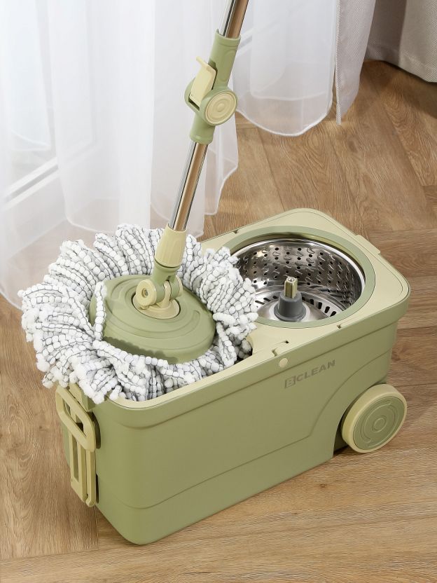 В отличие от стандартных ведер, модель Bclean оснащена колесиками для легкого перемещения и удобной шваброй с пластиковой и металлической рукояткой. Это особенно важно, если вы спрашиваете: чем отличается ведро с вращающимся отжимом от обычного? Ответ — экономия времени и сил, отсутствие контакта рук с грязной водой. Набор подходит для всех типов напольных покрытий, не оставляет разводов и легко моется после использования.
