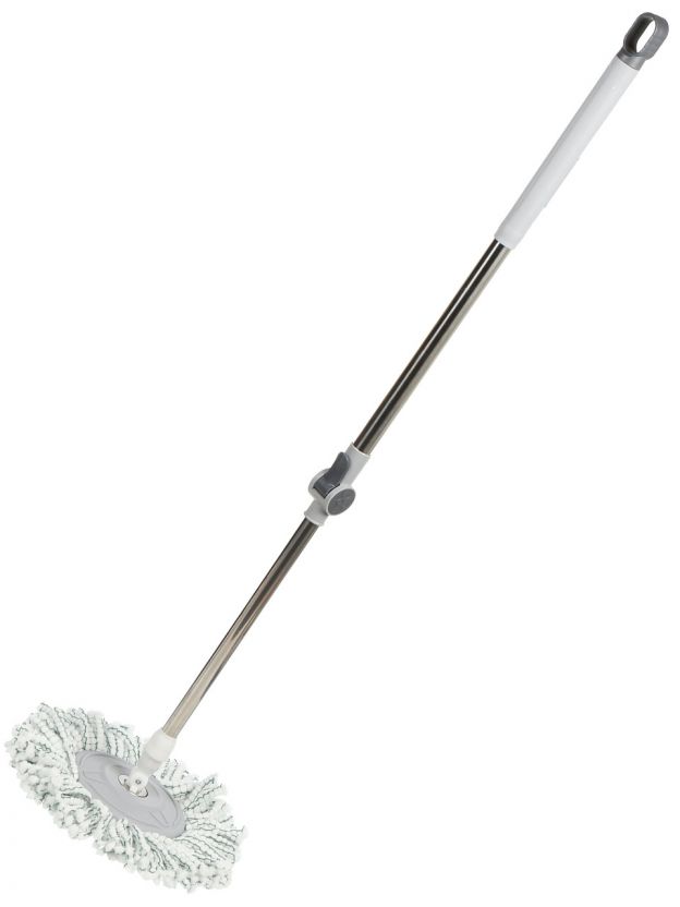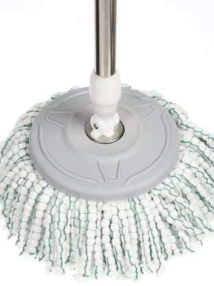 Вращающийся механизм экономит время, снижает нагрузку на руки и спину, позволяет не контактировать с грязной водой. Это особенно удобно при частой уборке больших помещений.