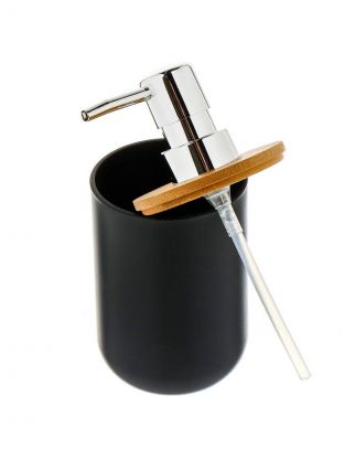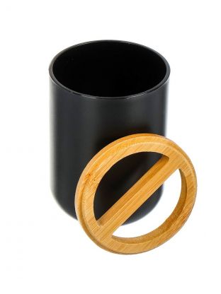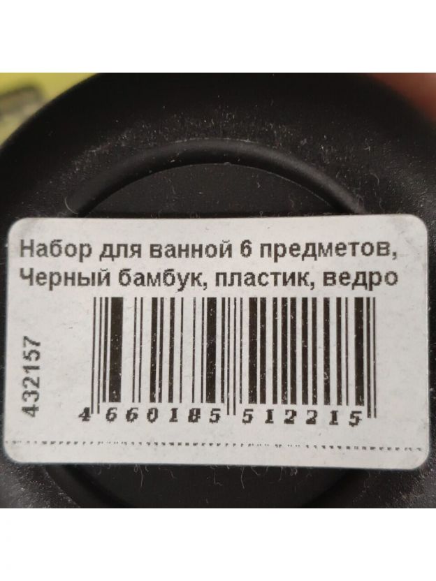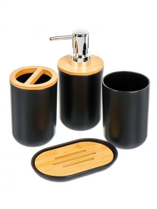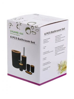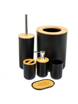Набор для ванной 6 предметов, Черный бамбук, пластик, ведро для мусора, ершик для туалета, стакан, подставка для зубных щеток, дозатор, мыльница, Y4-6501