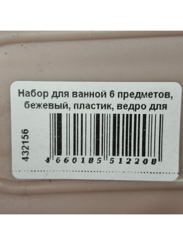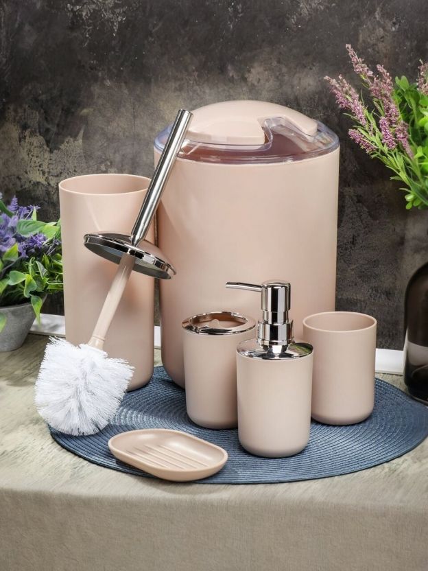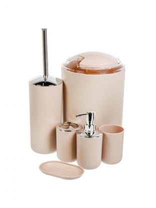Набор для ванной 6 предметов, бежевый, пластик, ведро для мусора, ершик для туалета, стакан, подставка для зубных щеток, дозатор, мыльница, Y4-6500