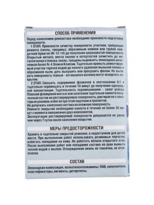 - для реставрации и ремонта эмалевого покрытия, заделки сколов, трещин ванн, холодильников, газовых и электрических плит, металличесикх раковин