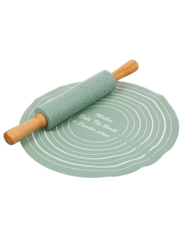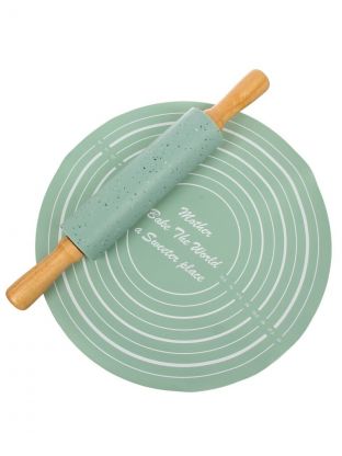 Набор для выпечки силикон, бамбук, скалка 38 см+коврик круглый 33 см, Мята, Y4-9629