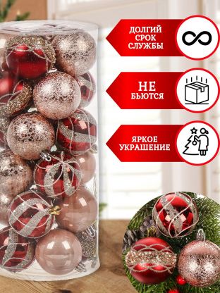 • Уникальный микс 24 небьющихся шаров — легко создать индивидуальный стиль новогодней ёлки